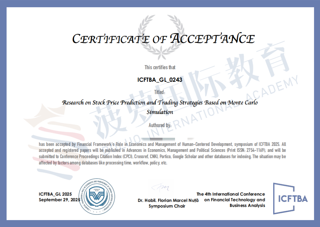 关于留学申请相关的背景提升项目,他坦言参加过AMC12并拿到了AIME晋级资格,另外为了提升申请相关软实力,他在去年暑假参加了中外双导师授课的实地科研项目,这个科研课题紧扣应用数学,主题是“基于概率论的统计建模与蒙特卡洛方向——随机抽样模拟在金融,物理领域的应用”,并且顺利的拿到了论文录用函,也收获了教授的好评。这段科研经历也成为了他文书素材中最核心的部分。