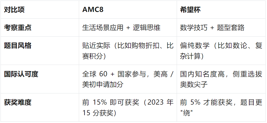 AMC8与希望杯对比?