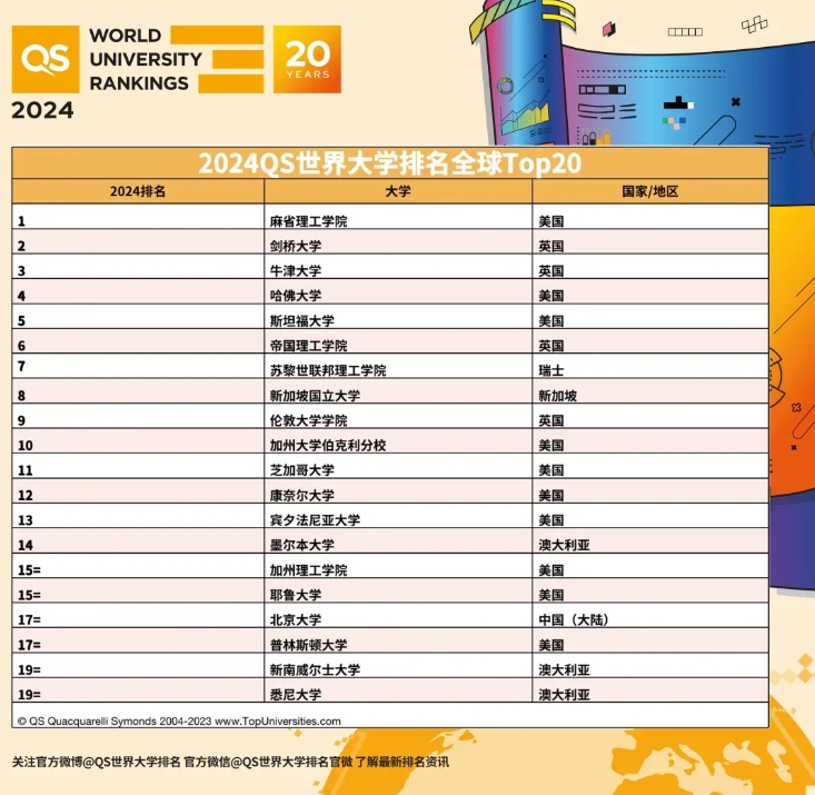 2024QS全球TOP20