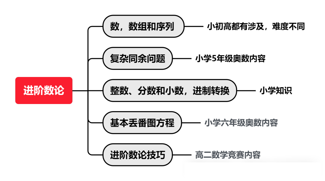 主要涉及因数与倍数,数位,质数与合数等;难点在于奇偶性分析,取余取整以及定义新运算问题。这一部分一般较难,通常出现在后几题