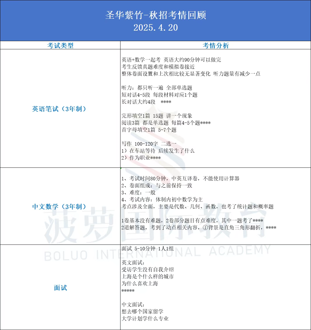 整体而言,圣华紫竹考试较为常规,数学难度较高,英语阅读难度较高。
