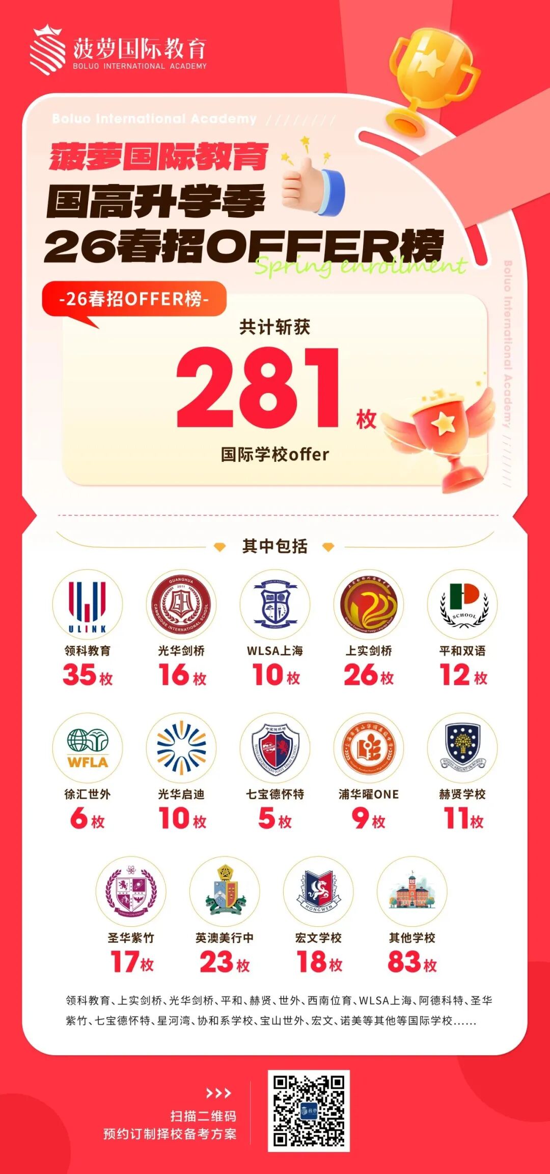 菠萝国际教育26春招大捷!斩获281枚国际学校Offer,实力领跑沪上升学!