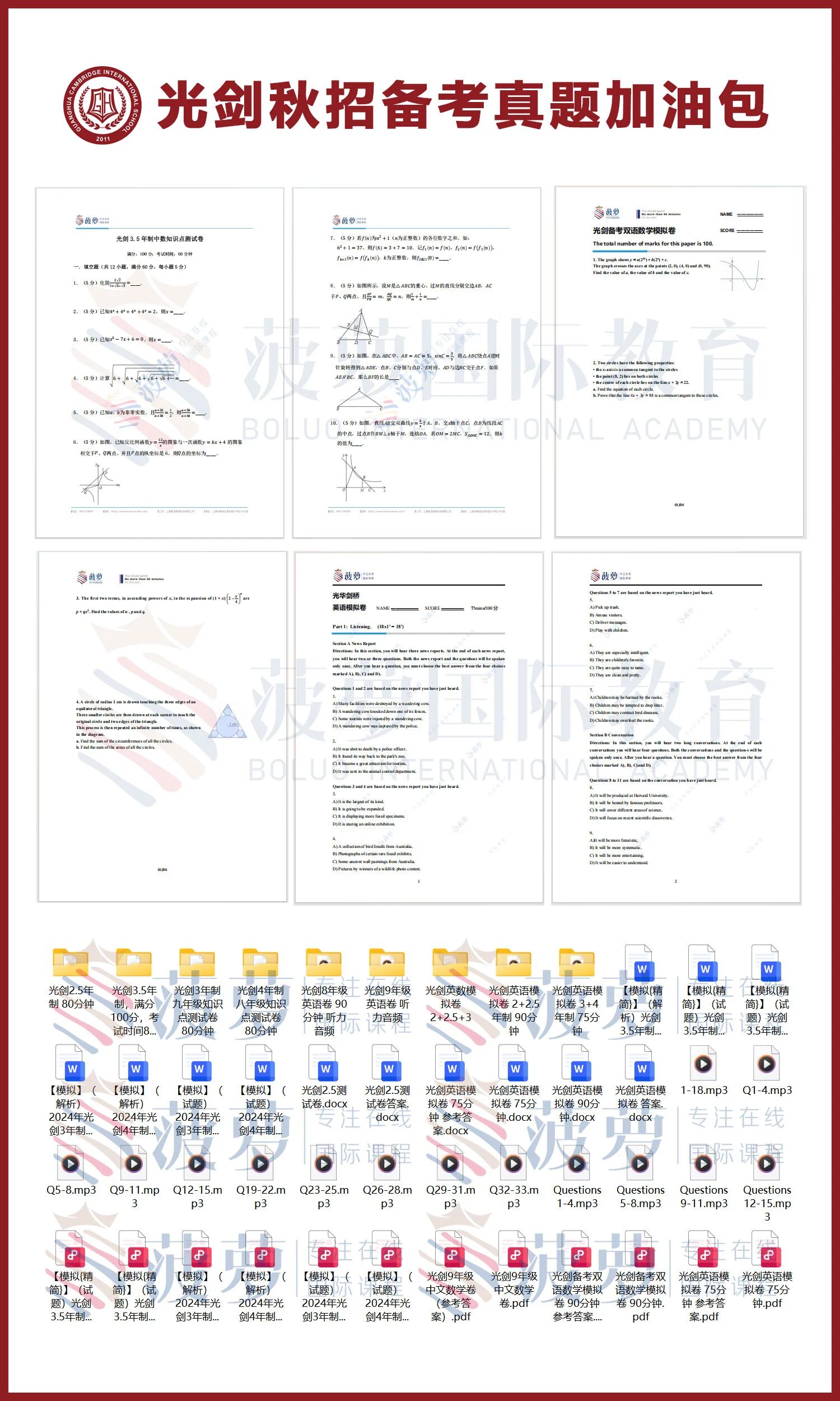 光剑数学考试在上海国际高中里以高难度著称。题量不多但每题分值大,代数部分80-90%都是竞赛题型。从知识点分布来看,几乎都是代数,最后一题计算量很大。对学生竞赛思维和数学功底要求高。