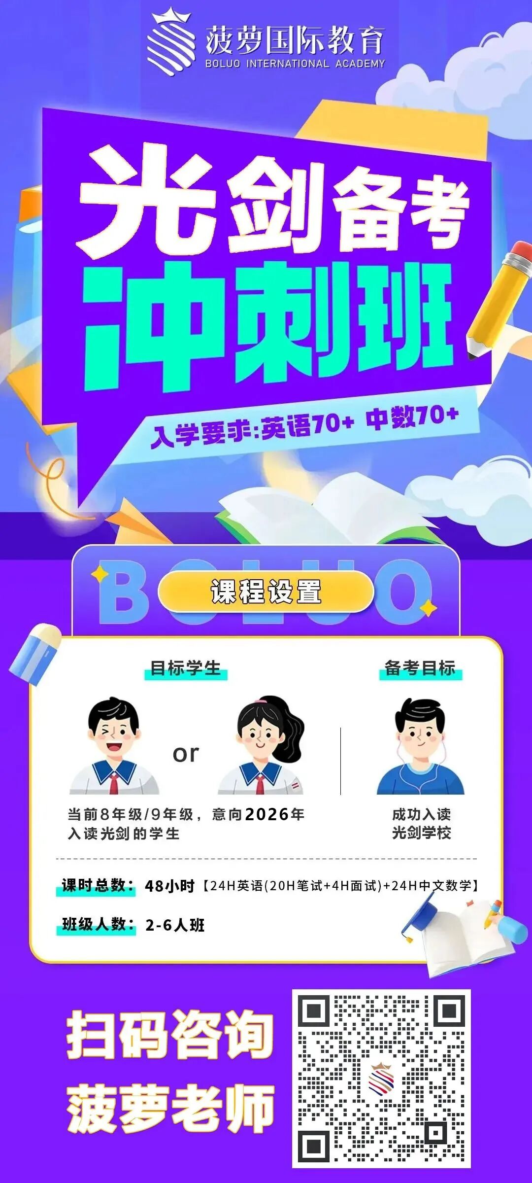 精准匹配目标:专为8/9年级、意向2026年入读光华剑桥的学生打造,针对性极强。