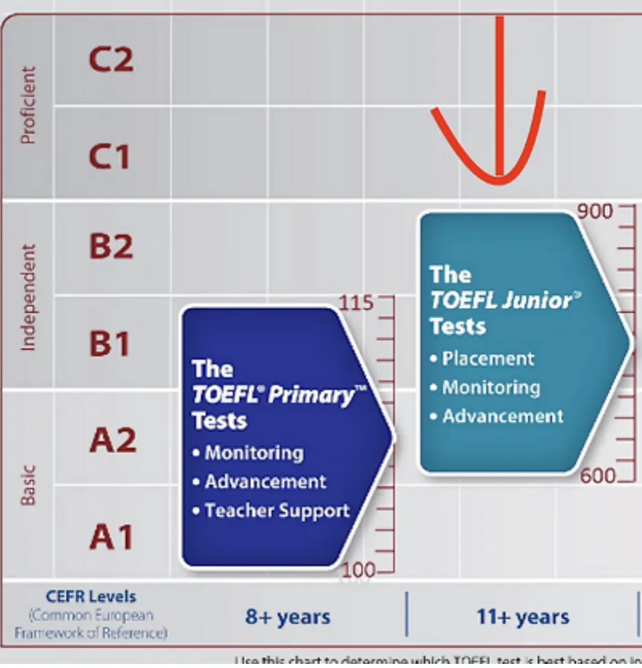 TOEFL Junior® 考试适用于11岁以上的学生,对应的CEFR的跨度是从A1的顶端到B2中间这个过渡阶段。作为ETS托福家族的一员,它是对学生英语沟通能力客观、准确的测量,帮助他们确定自身优势和不足。