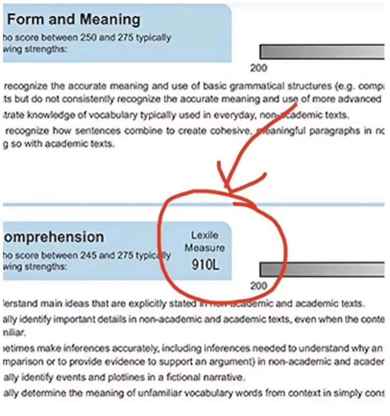 孩子考试后的成绩单可以清楚的看到对应的欧标等级,就能非常清楚地知道自己的语言成绩是什么水平,包括下面要着重讲的小托福考试,成绩单上会有一个Lexile index蓝思指数。