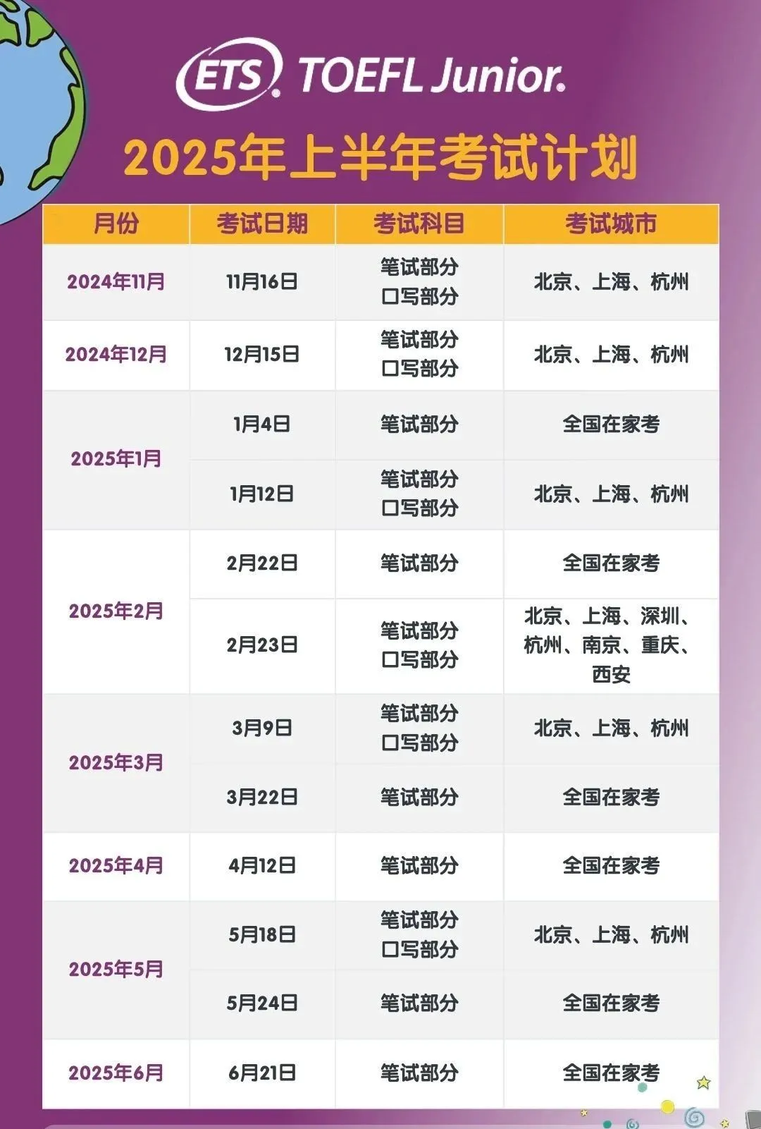 2025年上半年小托福考试时间已出!第一场在1月4日,准备参加小托福的家长同学可以准备了。同时官宣了两个重磅信息: