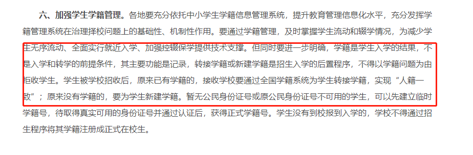 在教育部发布的《中小学生学籍管理常见问题及解答》中,已经有明确说明👇