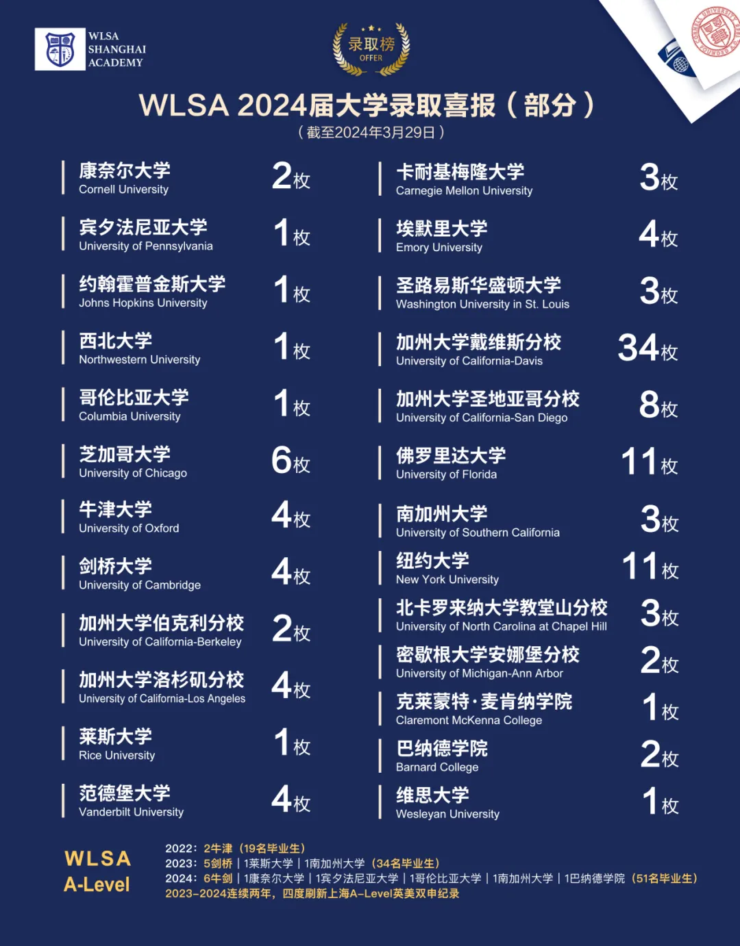 2024年,WLSA再次刷新“天花板”,成为全国唯一获得“哈耶普斯麻”+“藤校牛剑”全录取的民办校。