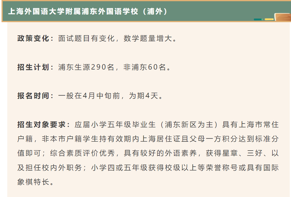 上海外国语大学附属浦东外国语学校(上外浦外):注重外语能力,学生需适应住宿生活。