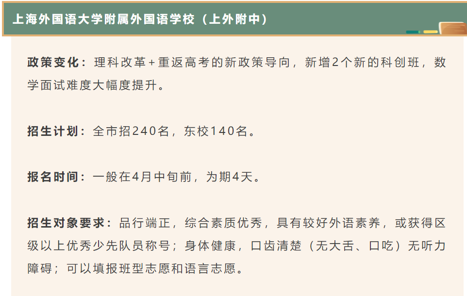 上海外国语大学附属外国语学校(上外附中):以外语教学为特色,被誉为“外交官摇篮”。