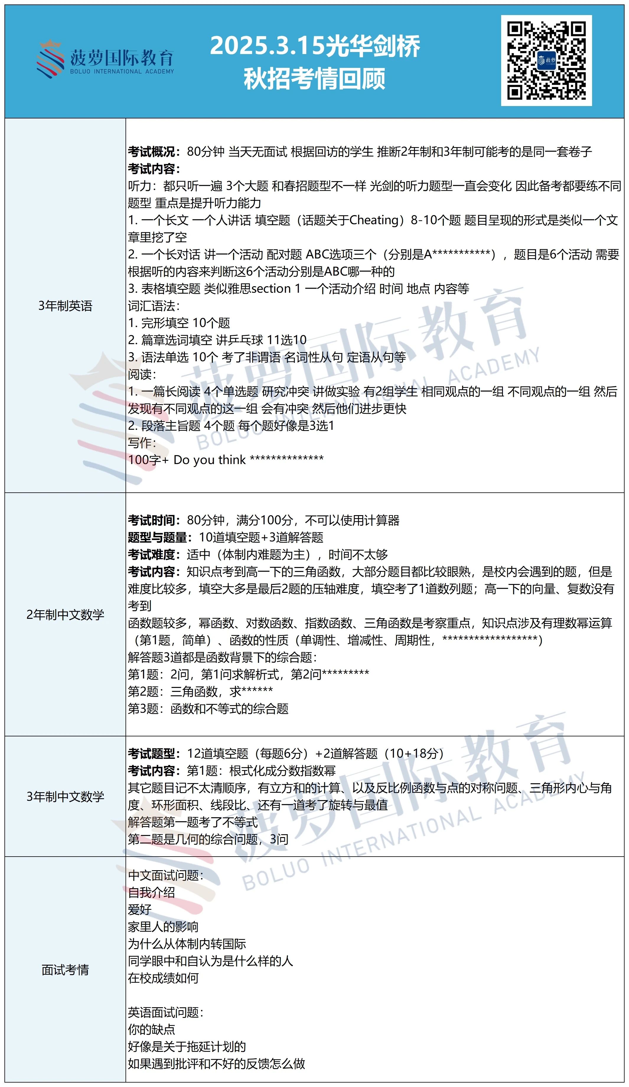 目前,光华剑桥2025年秋招仍在进行中,剩余3场考试(4月12日、5月17日、6月21日),招生年级覆盖四年制、三年制、两年制课程班。