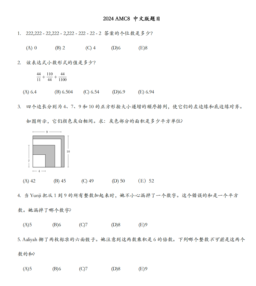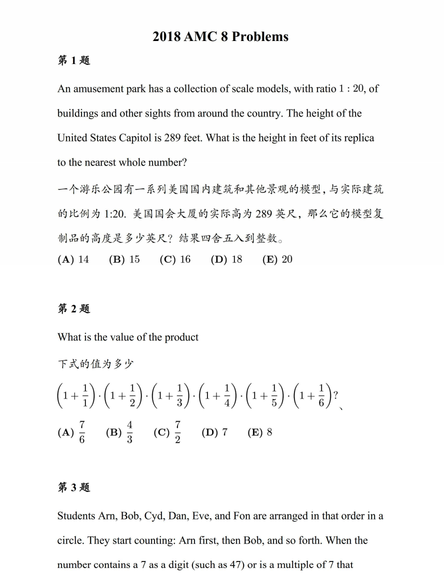近10年的amc8数学竞赛历年真题已经整理好啦~真题可以打印练习,免费领取哦~